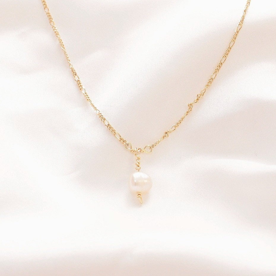 Collar con cadena fina dorada y una perla natural, incluye caja de regalo